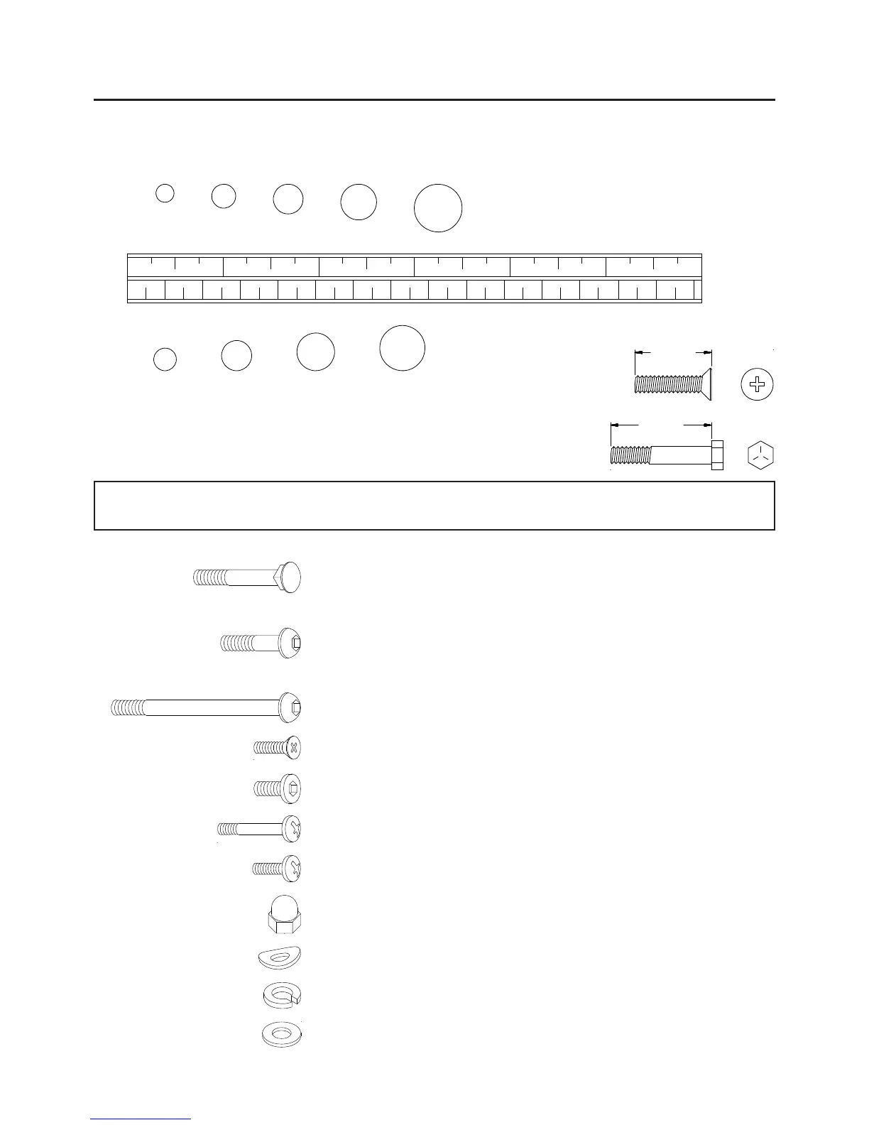 This chart is provided to help identify the hardware used in the assembly process. Place the washers or the