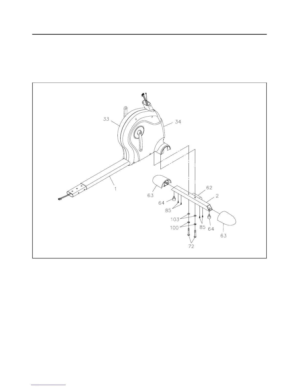 Slide the FOOT CAPS(63) onto both ends of the FRONT STABILIZER(2) so they fit over the edges of the