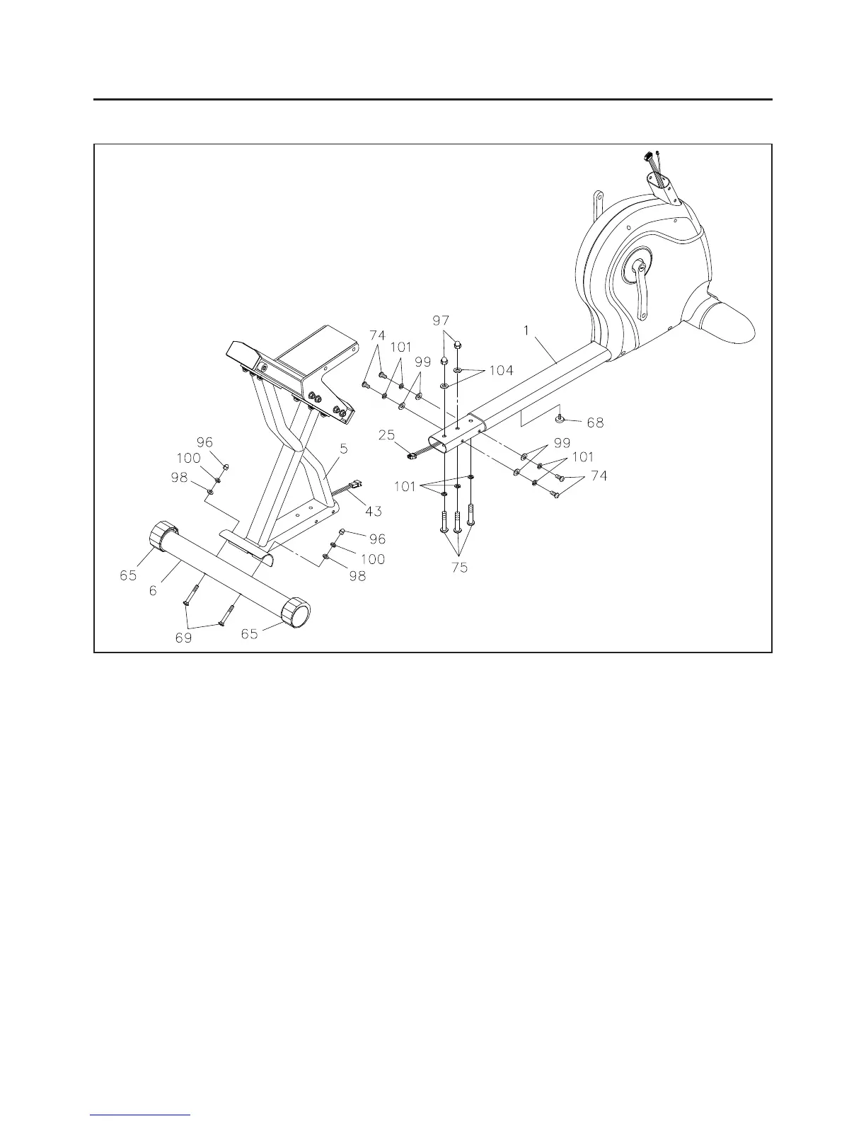 Attach the REAR STABILIZER(6) to the REAR FRAME(5) with CARRIAGE BOLTS(M8x1.25x75mm)(69),