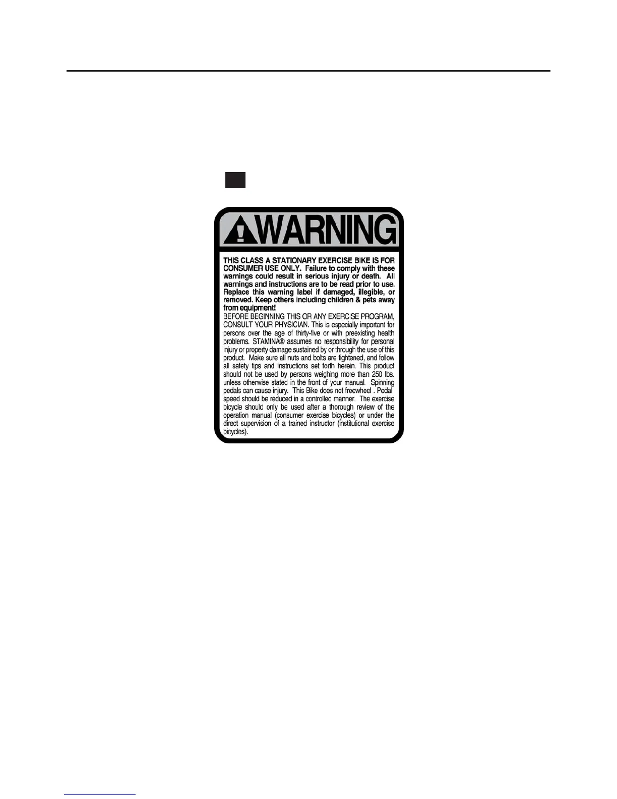 Stamina Fusion 7250 - Equipment Warning & Notice Labels