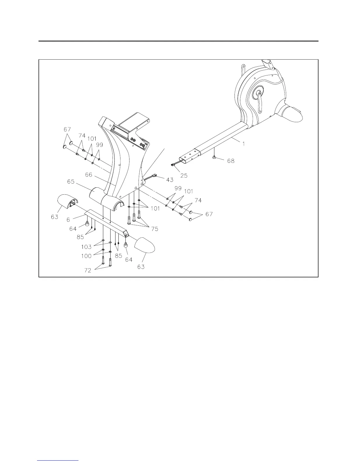 Slide the FOOT CAPS(63) onto both ends of the REAR STABILIZER(6) so they fit over the edges of the
