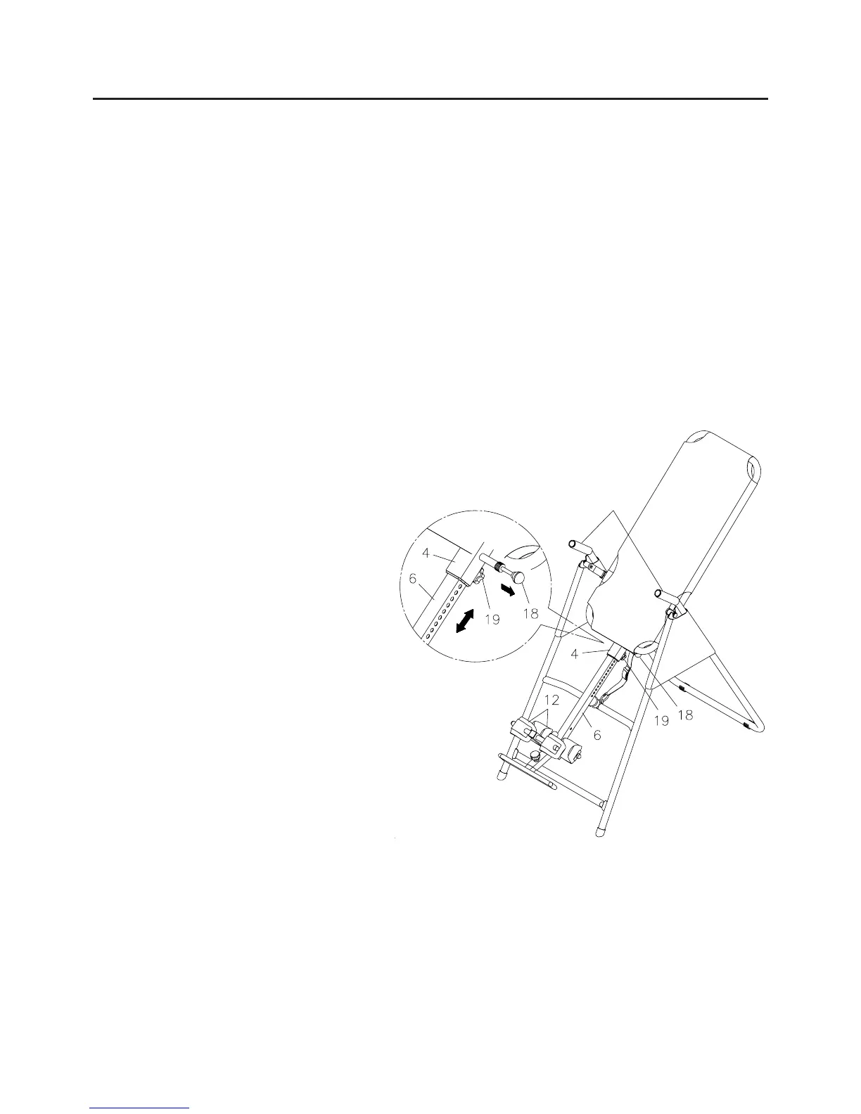 Use the lowest holes in the PIVOT ARMS(5) until you become familiar with the Gravity Inversion Table.