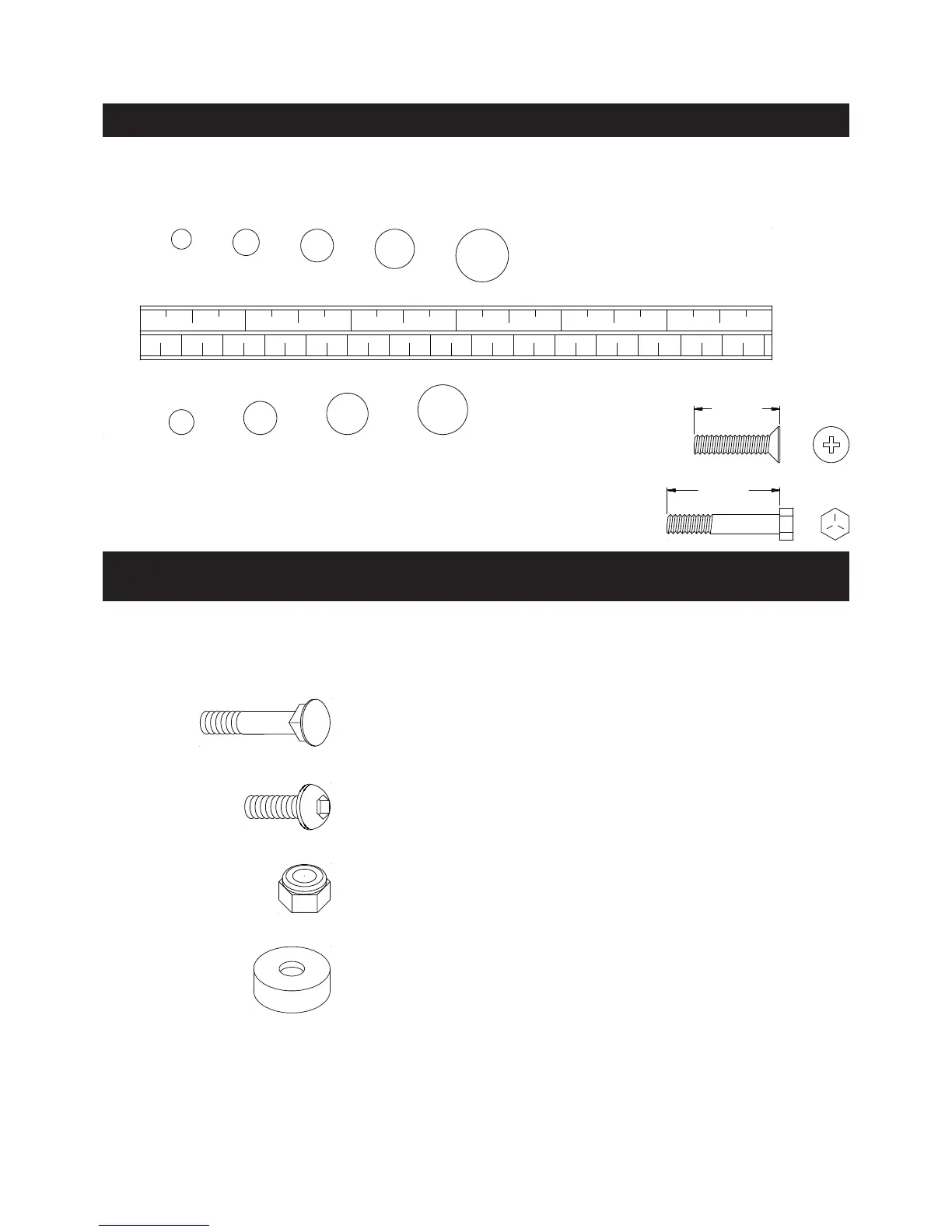 This chart is provided to help identify the hardware used in the assembly process. Place the washers or