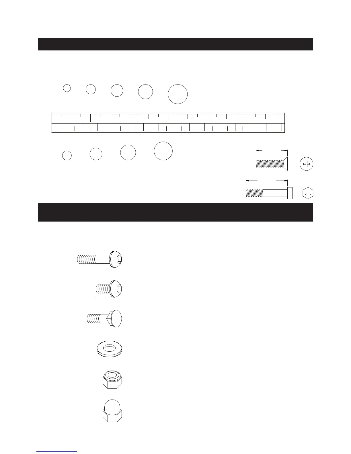 This chart is provided to help identify the hardware used in the assembly process. Place the washers or