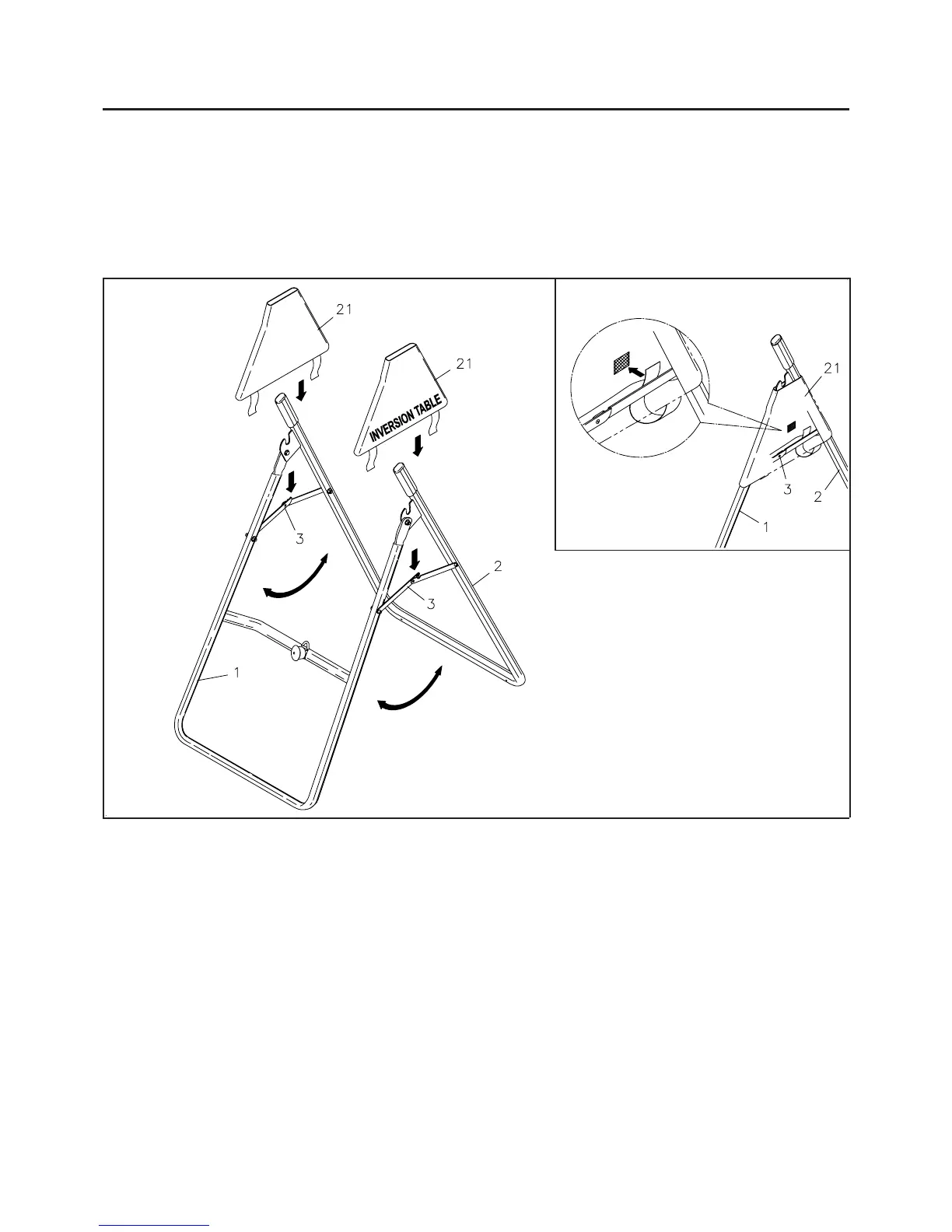 should not be visible, and the INVERSION TABLE LOGO should be on the outside. Refer to the