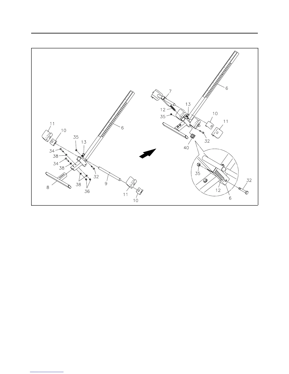 SQUARE PLUG(40) into the HEIGHT ADJUSTMENT BEAM(6). Install a HEEL HOLDER