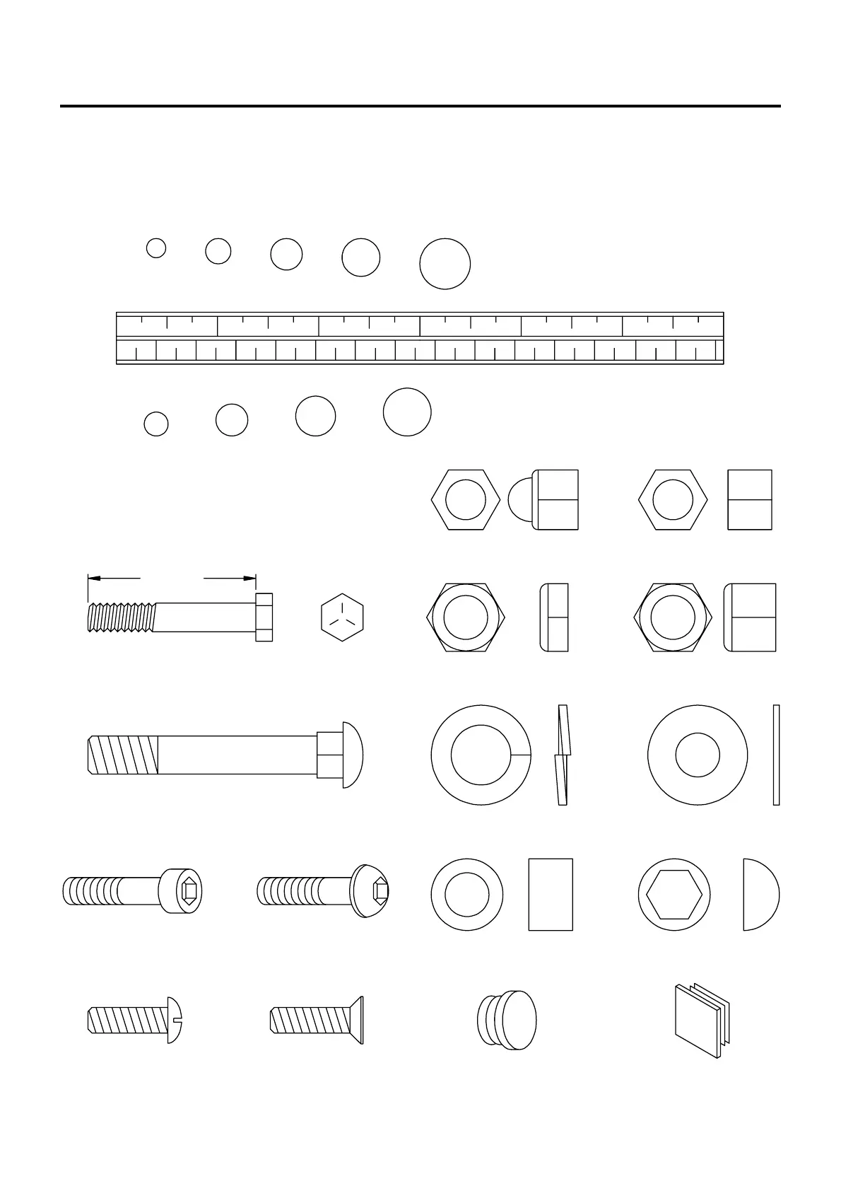 This chart is provided to help identify some of the small parts used in the assembly of this product. This