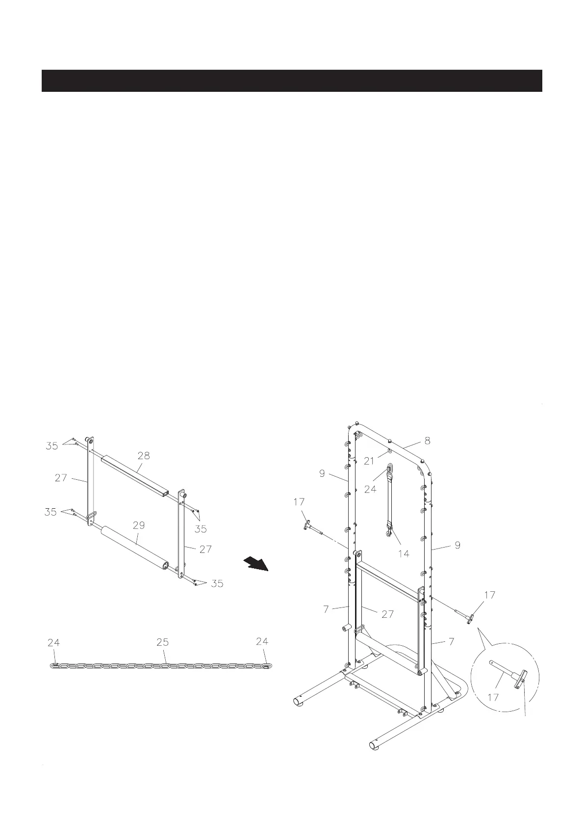 (27) to one of the adjustment holes in the UPRIGHTS(9) with the LOCKING PINS(17). Always make sure