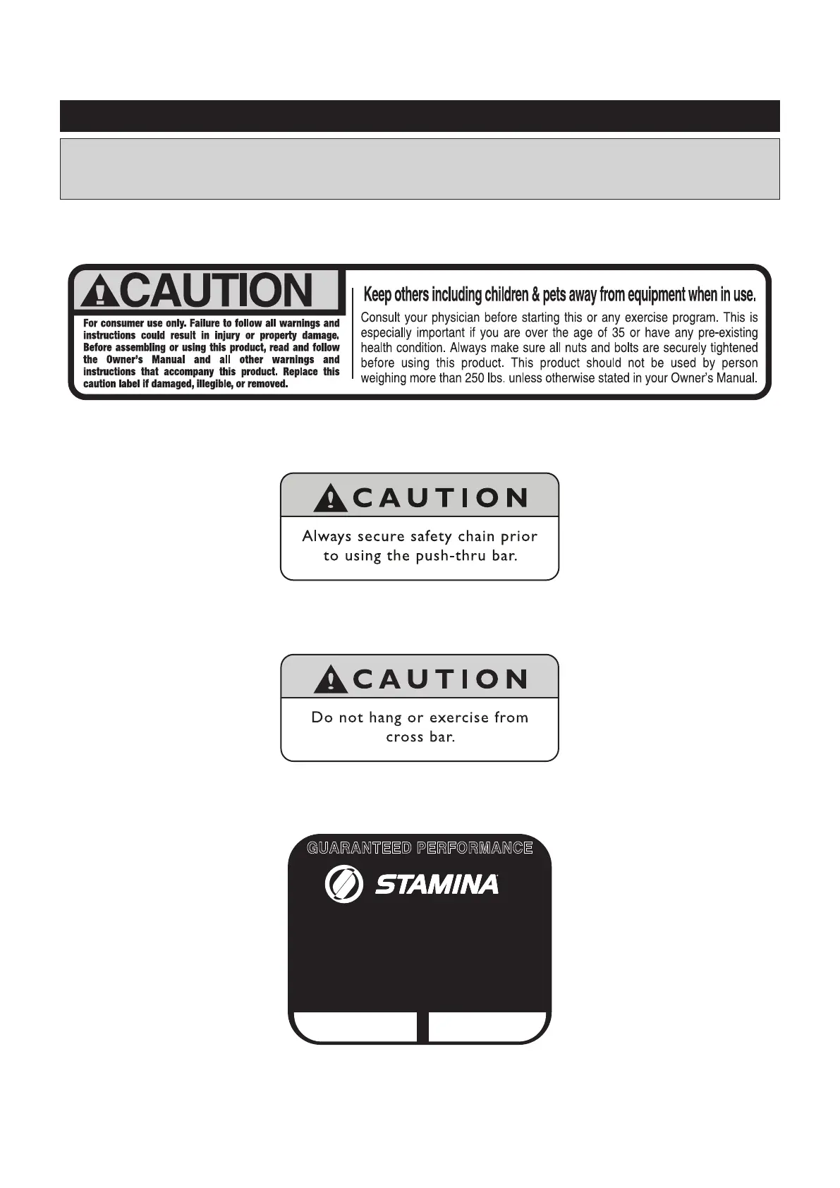 This chart is provided to help identify the warning, caution, and notice labels on the AeroPilates®