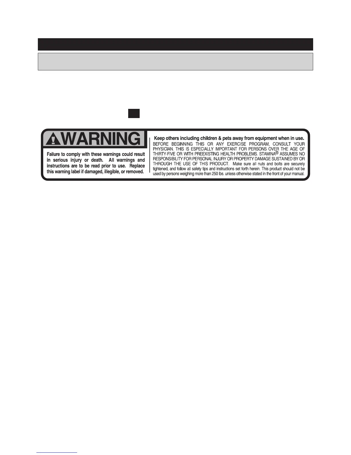 Stamina PT 1690 - Equipment Warning & Notice Labels; Key Warning Label Details