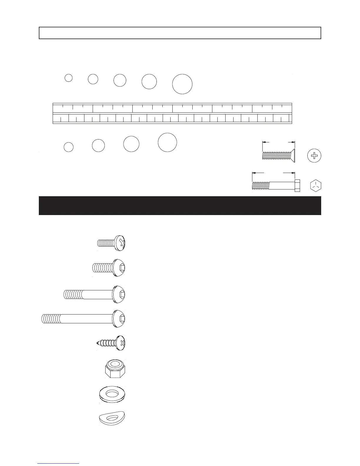 This chart is provided to help identify the hardware used in the assembly process. Place the washers or