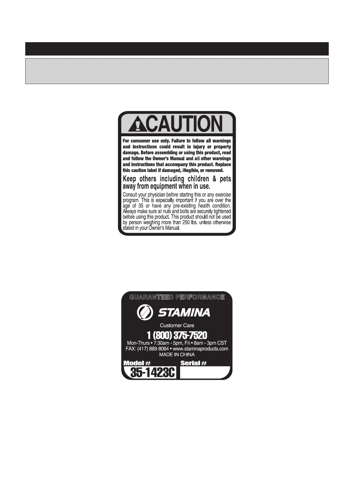 This chart is provided to help identify the warning, caution, and notice labels on the STAMINA│X