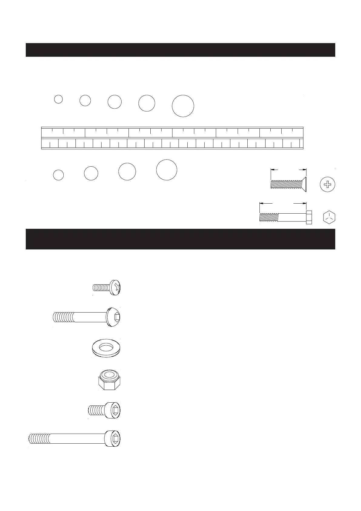This chart is provided to help identify the fasteners used in the assembly process. Place the washers or