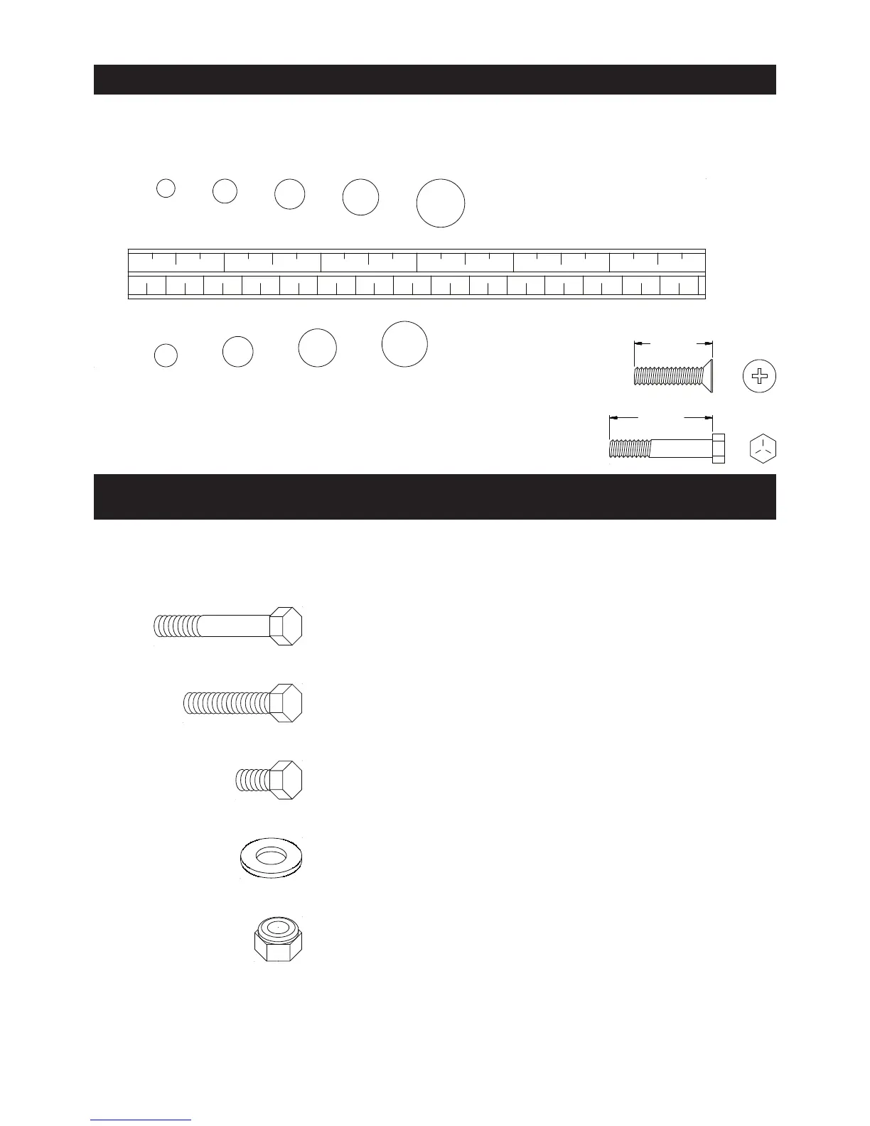 This chart is provided to help identify the hardware used in the assembly process. Place the washers or