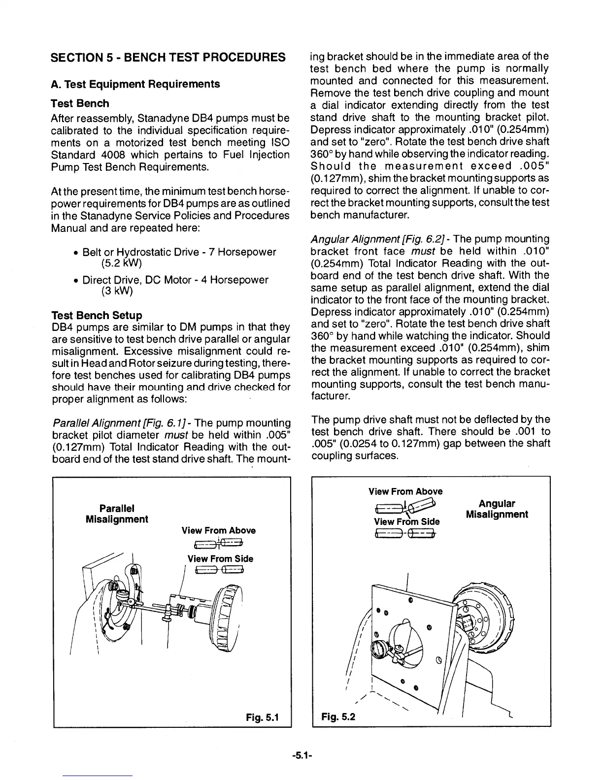 Stanadyne DB4 - Section 5: Bench Test Procedures; Test Equipment and Bench Requirements; Test Bench Setup and Alignment
