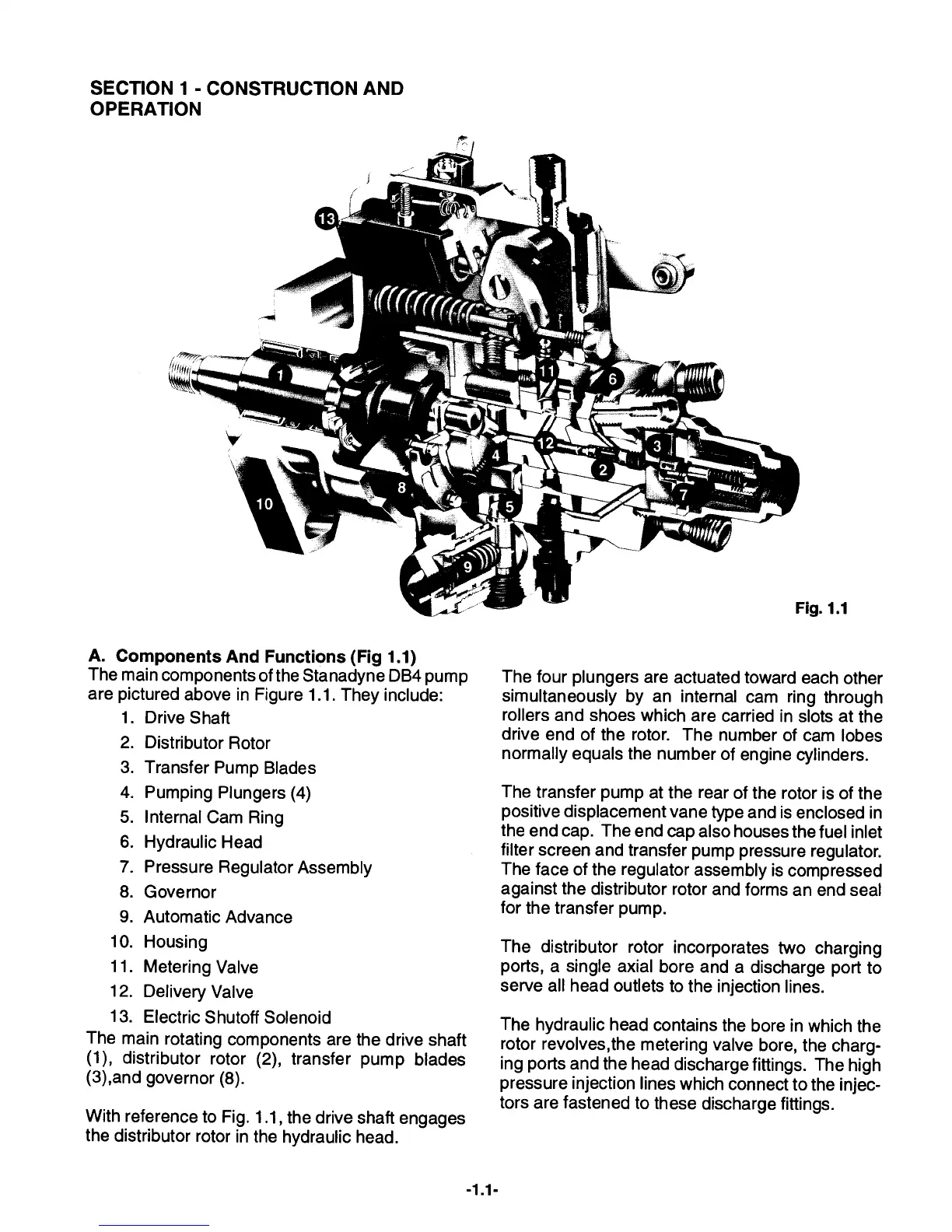 Stanadyne DB4 - Section 1: Construction and Operation; Components and Functions