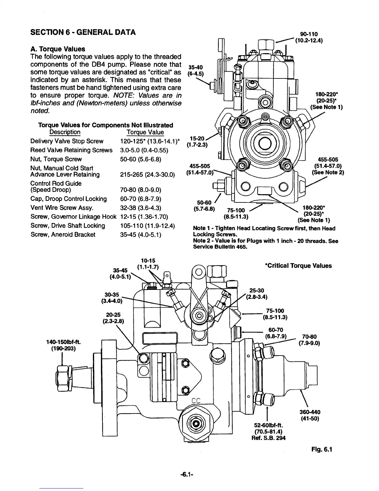 Stanadyne DB4 - Section 6: General Data; Component Torque Values