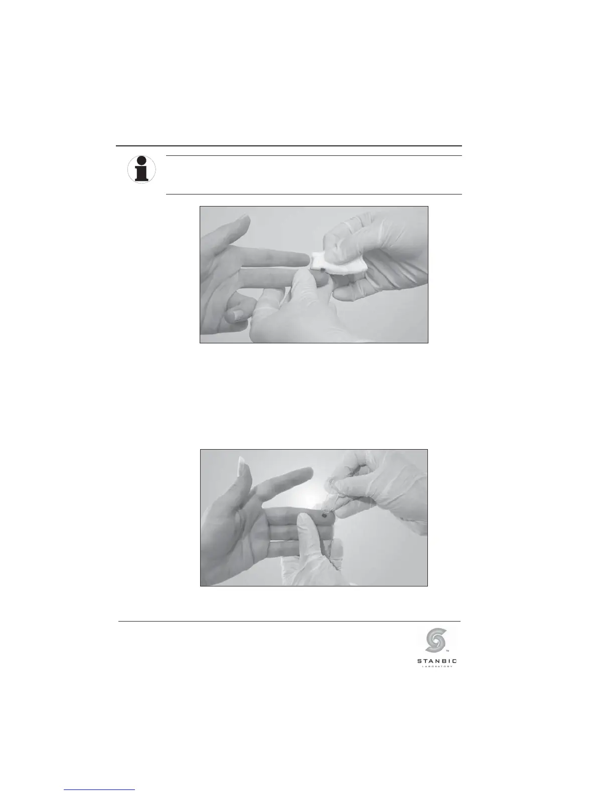 Illustration 12: Blotting the first drop of blood.