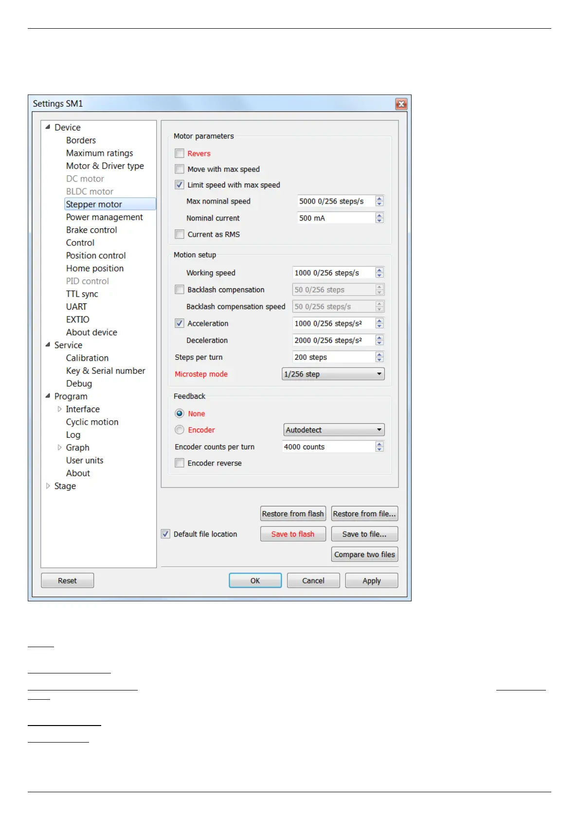 In the Application Settings Device configuration -> Stepper motor