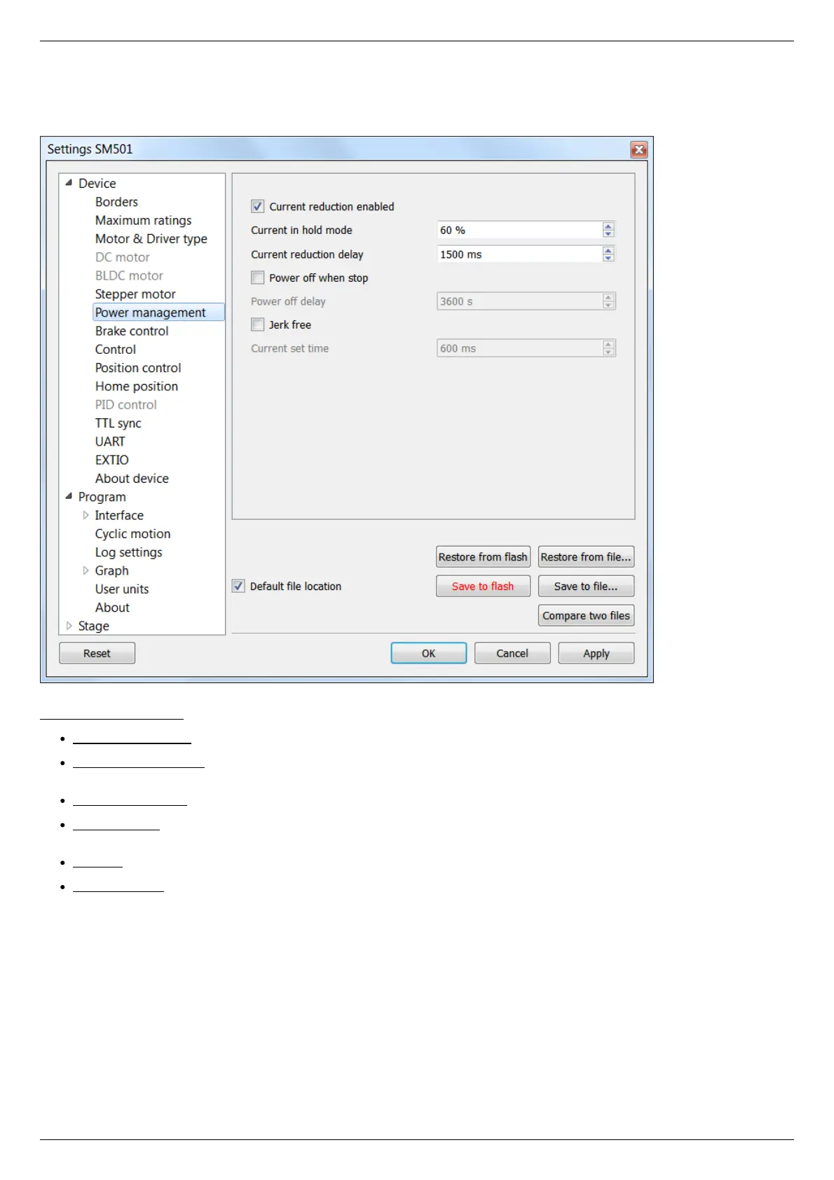 Detailed description of these parameters see in the Power control section.