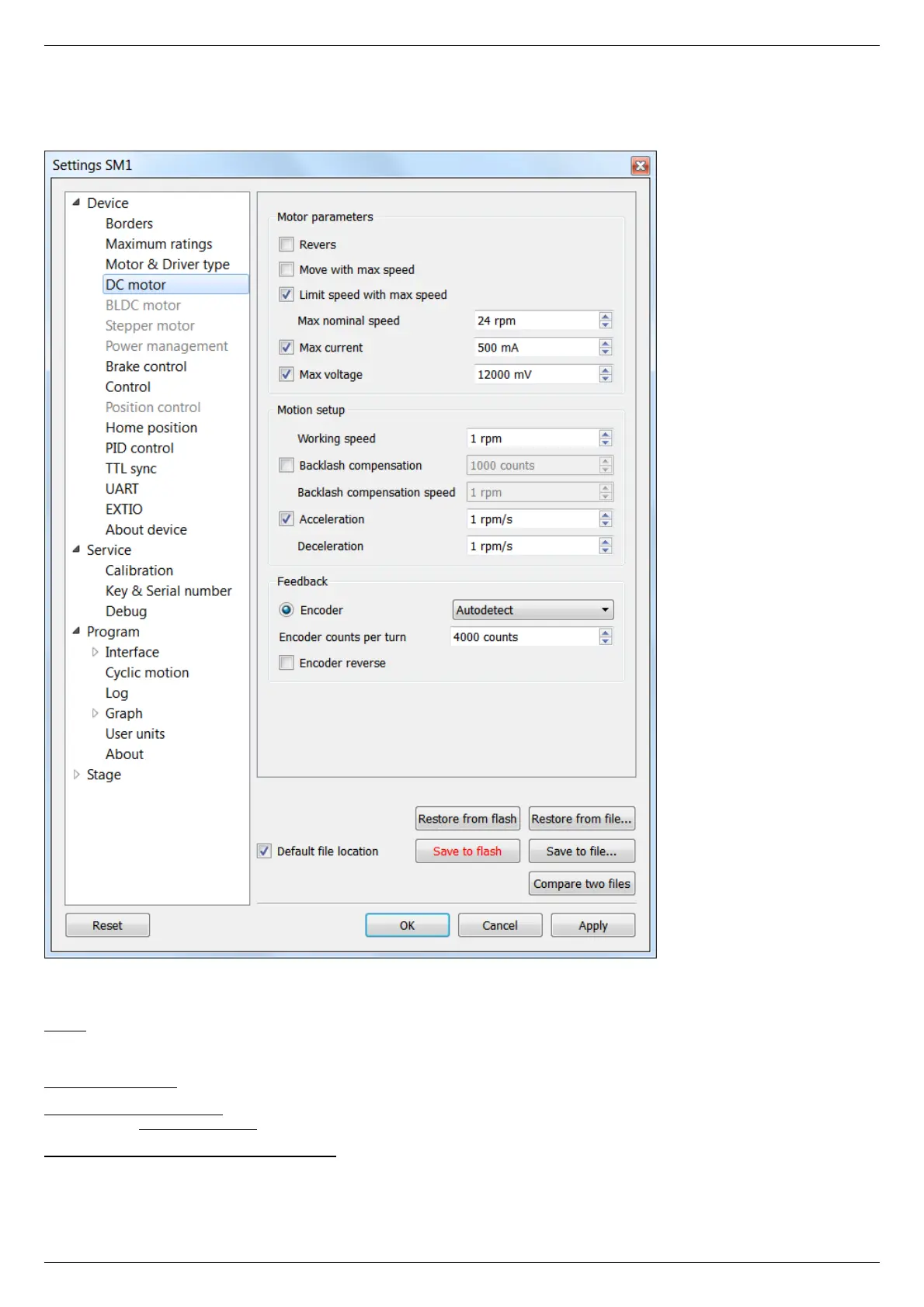 In the Application Settings Device configuration -> DC Motor