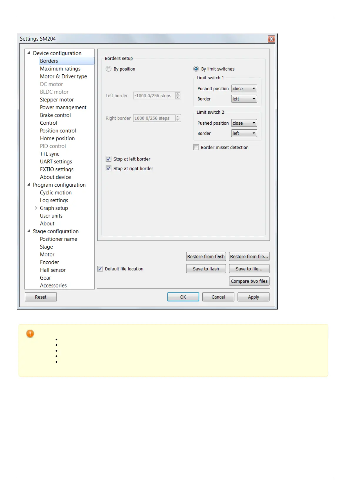 Warning. For the controller to work with stepper motors it is required to properly set up: