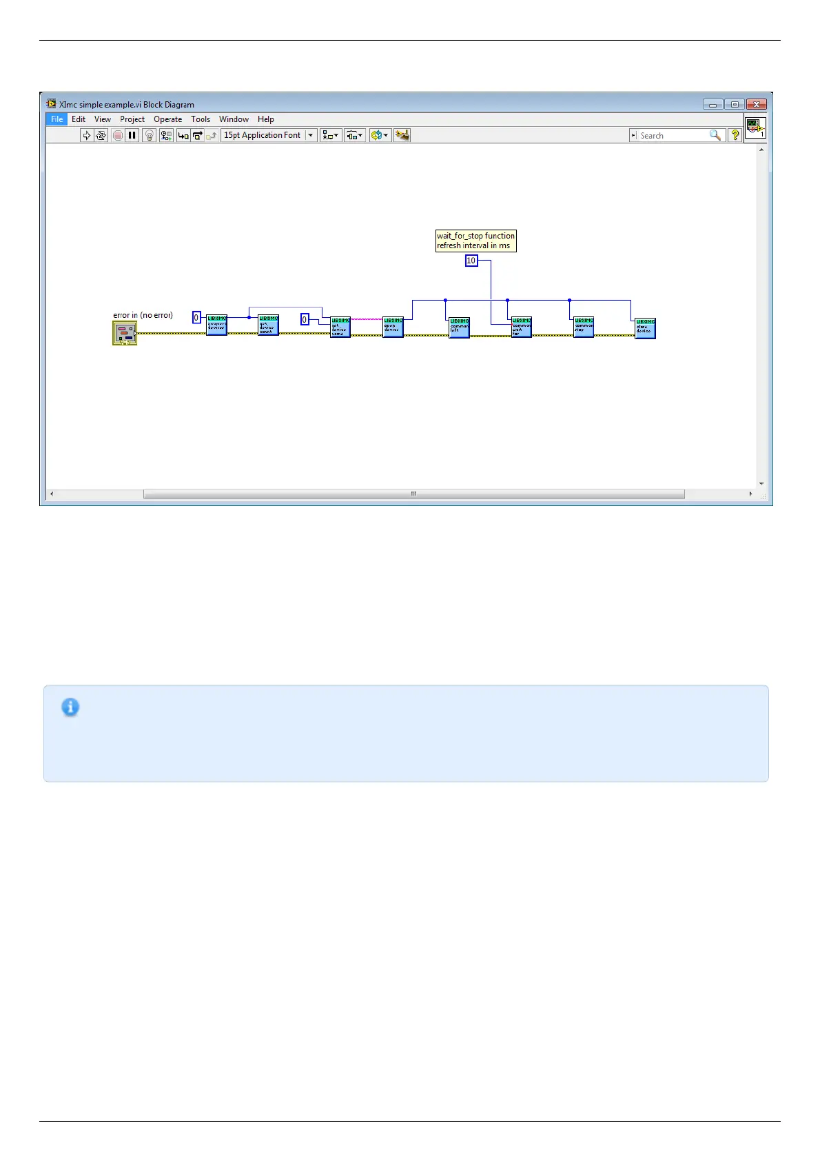 example.vi" calls command_left, command_wait_for_stop and command_stop as an example. After you stop using the controller you