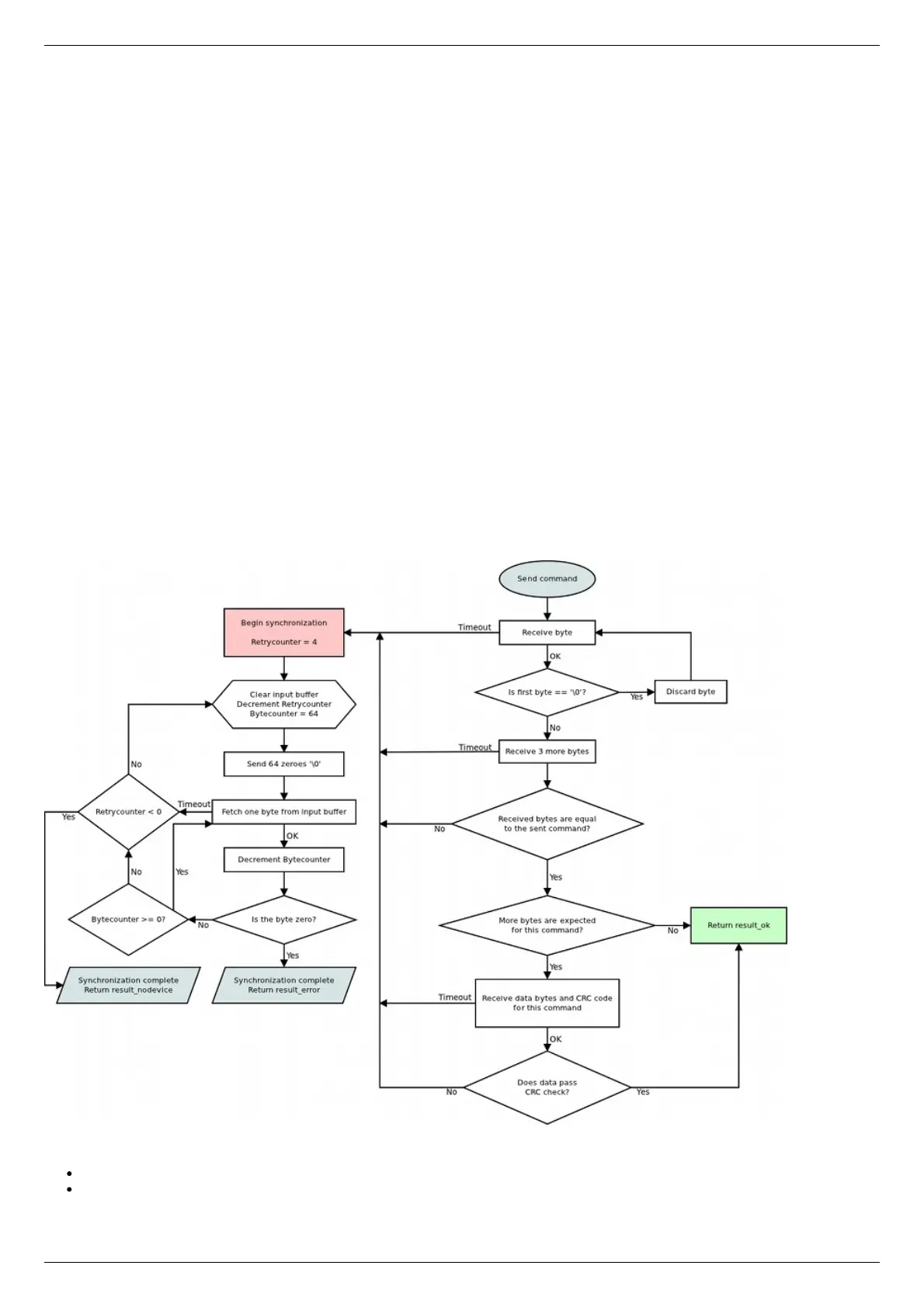 received bytes do not match the sent command identifier, then zero byte synchronization procedure is launched, command is