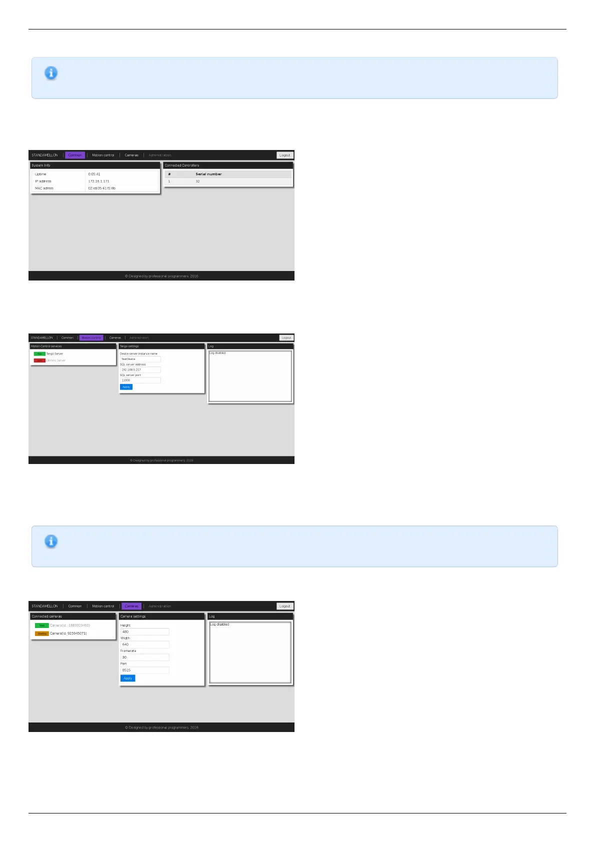 In this section there is a list of all connected cameras. Each camera is associated with streaming server instance, which exposes