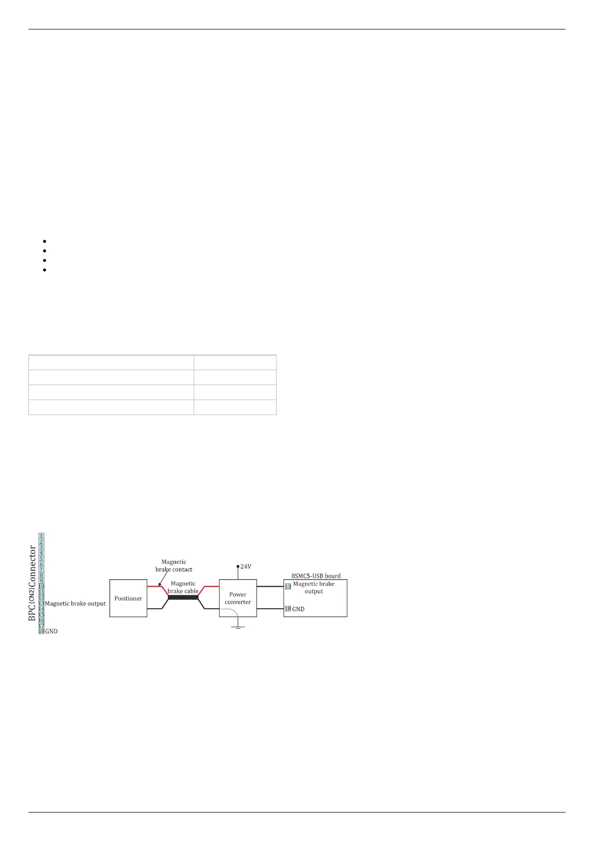 There is an output pin on BPC connector for magnetic brake control, which is installed on the stepper motor shaft. Magnetic brake is