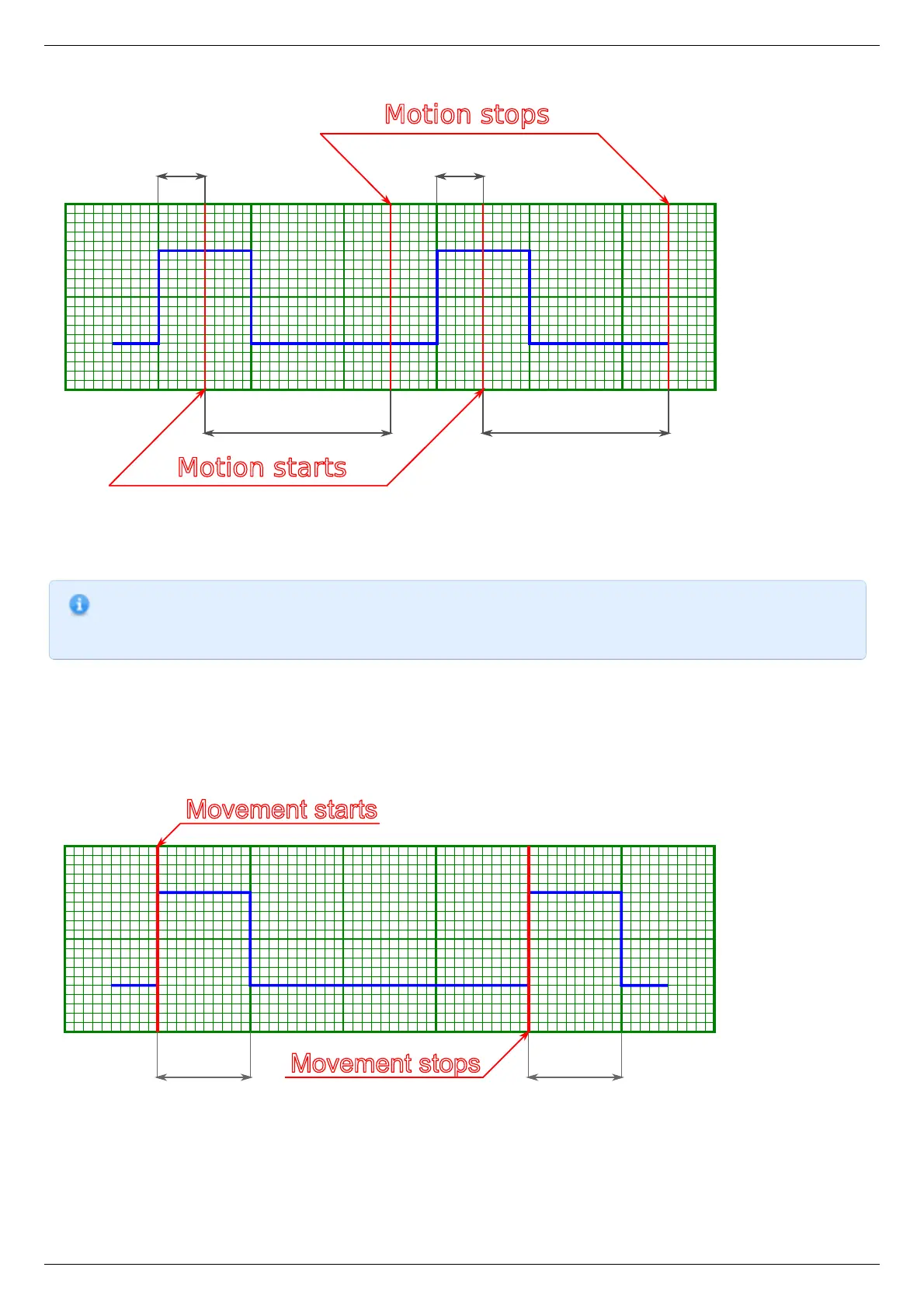 and/or stop of the movement, and/or on each shift on the preset distance. ImpulseTime setting defines the length of sync pulse, either