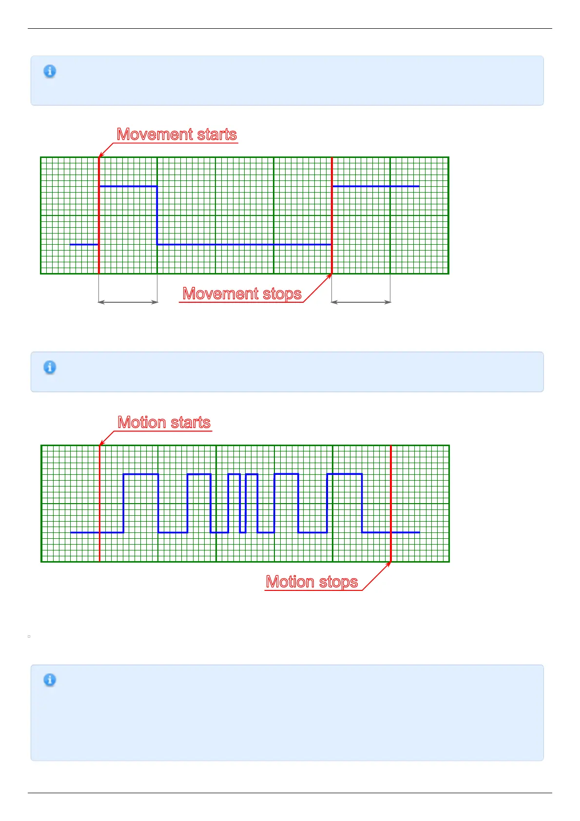 Syncout pulses generated on start and stop of the movement (pulse is measured in distance units)