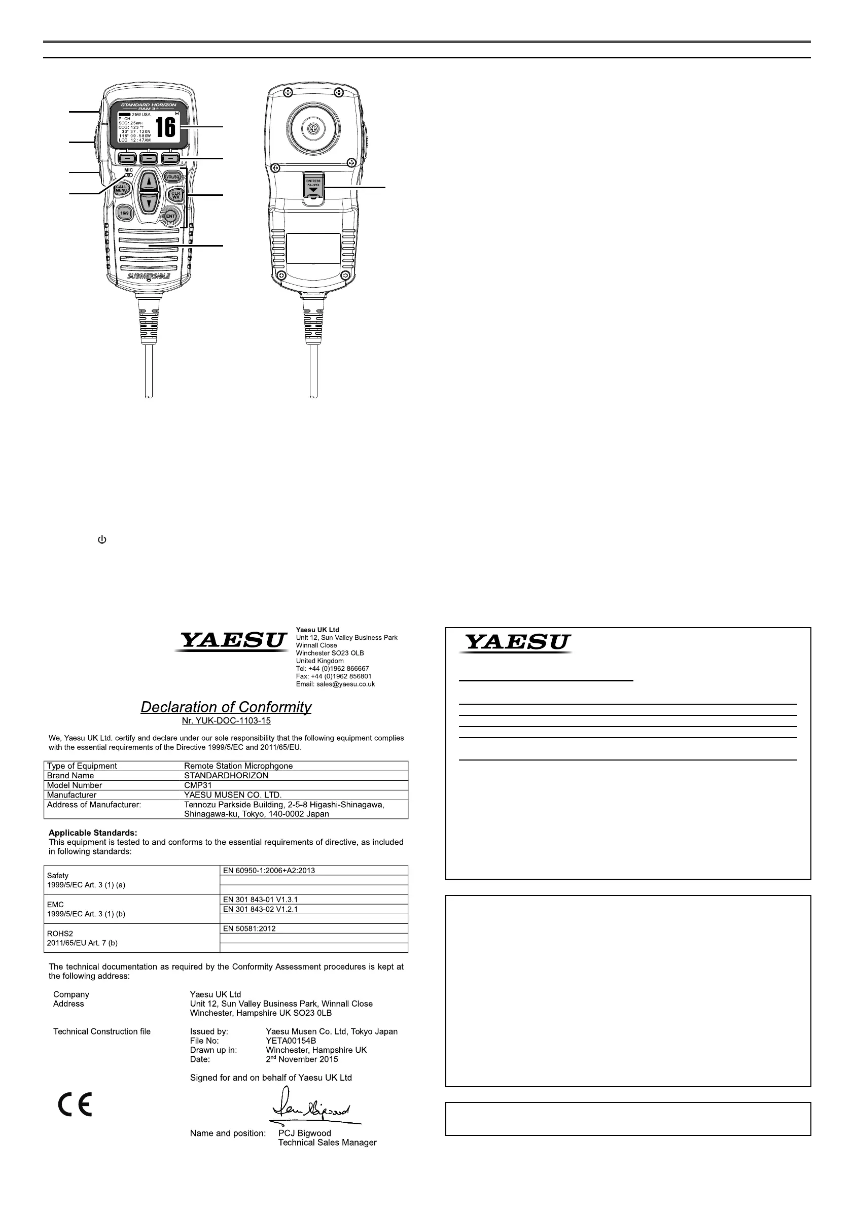 Changes or modications to this device not expressly approved by YAESU MUSEN
