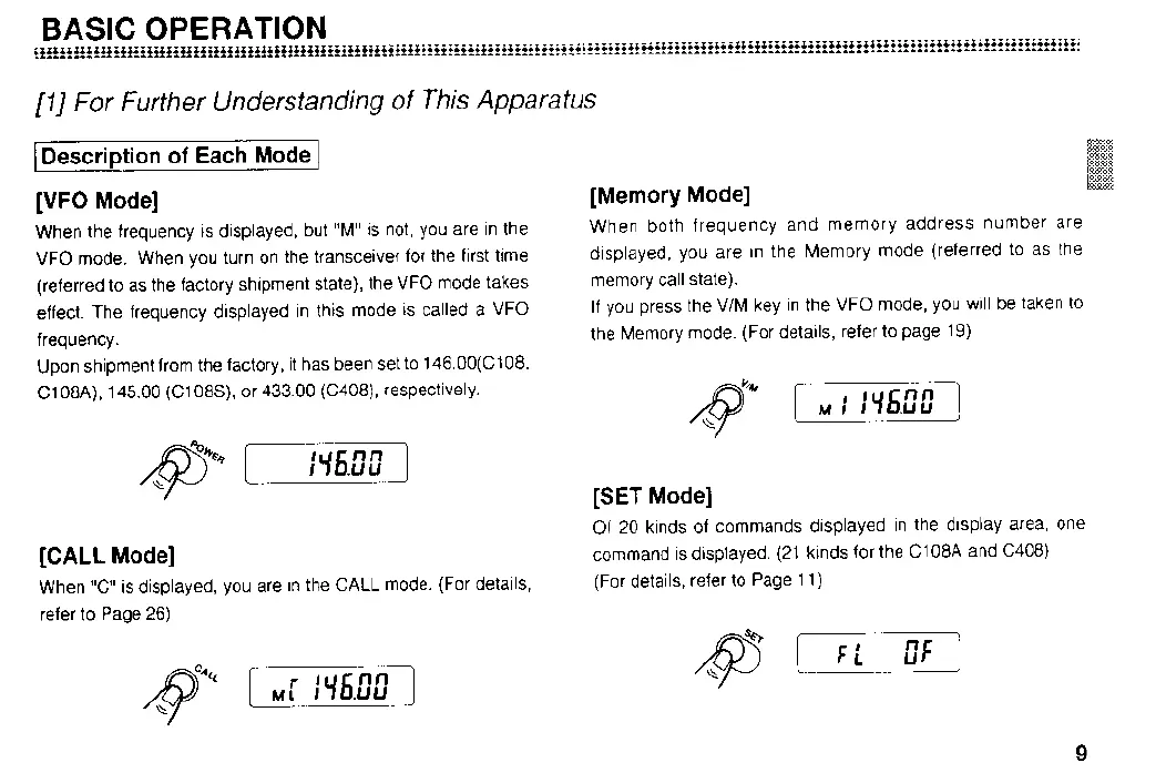Standard C108 - BASIC OPERATION; Understanding the Apparatus Modes