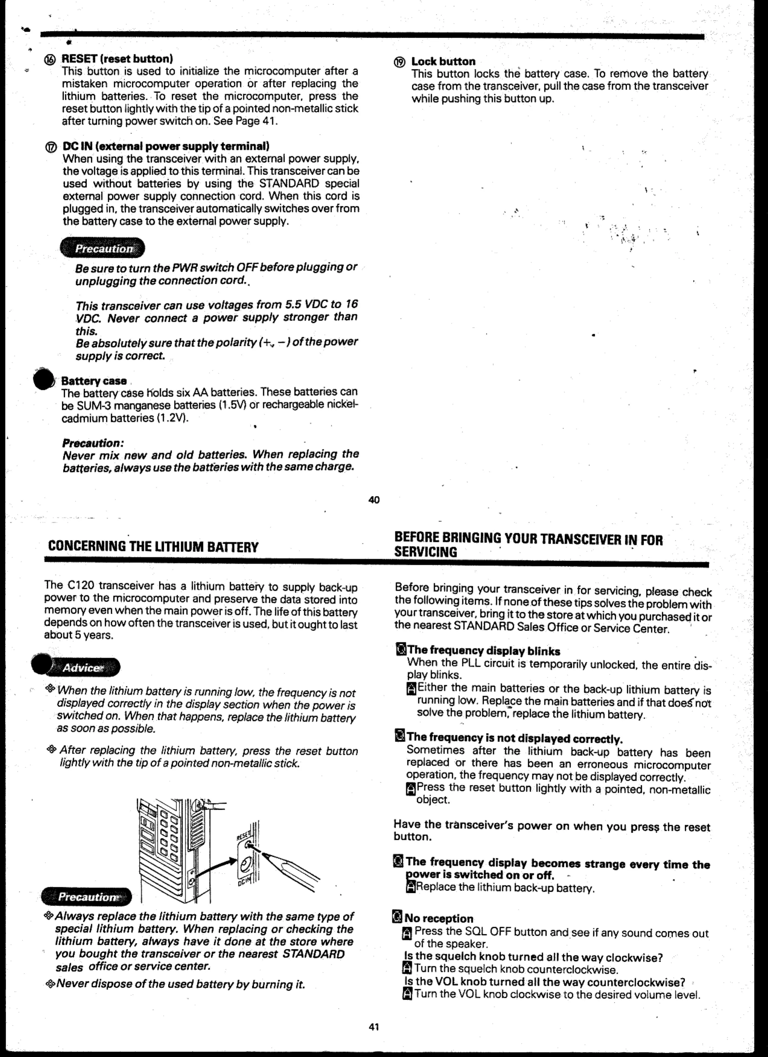 Standard C120 - Battery and Servicing Information; Lithium Backup Battery Management; Troubleshooting and Servicing Guidance