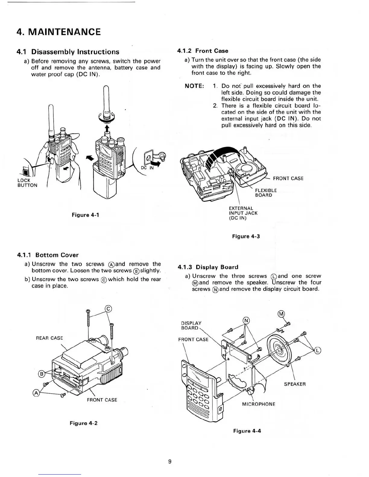 Standard C168 - 4. MAINTENANCE; 4.1 Disassembly Instructions; 4.1.1 Bottom Cover; 4.1.2 Front Case