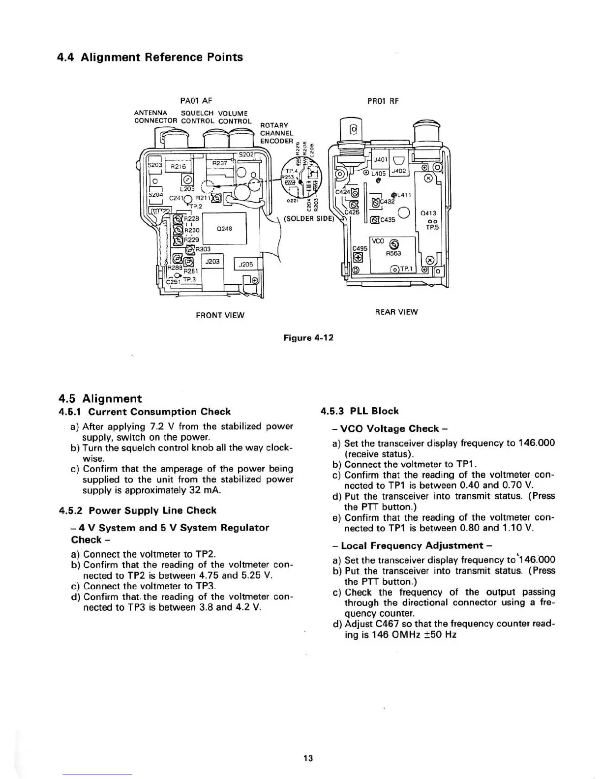 Standard C168 - 4.4 Alignment Reference Points; 4.5 Alignment; 4.5.1 Current Consumption Check; 4.5.2 Power Supply Line Check