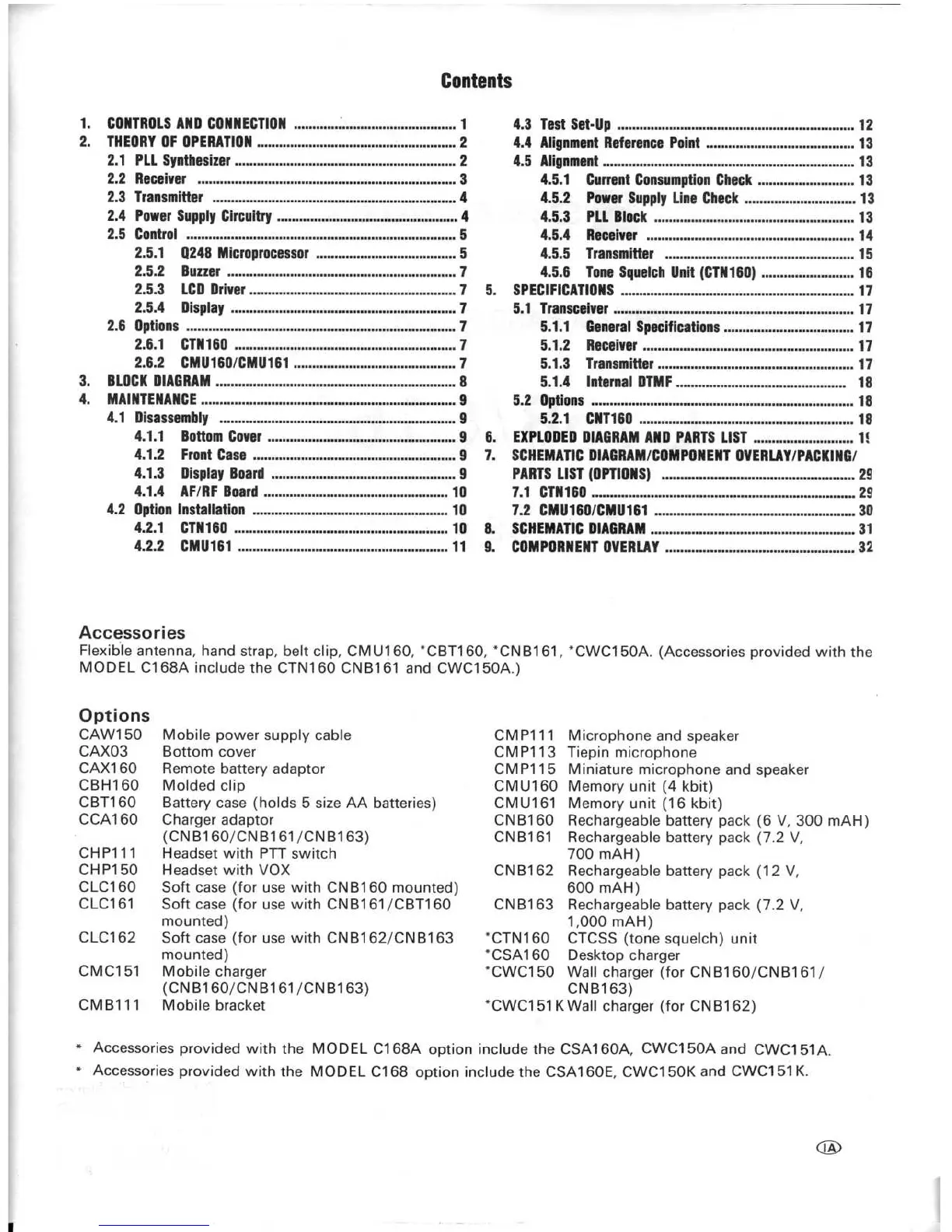 Standard C168 - Contents; Accessories; Options