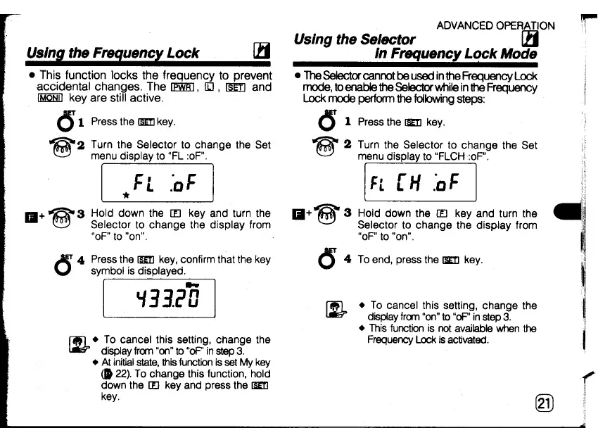 Standard C508 - Using the Frequency Lock; Using the Selector in Frequency Lock Mode