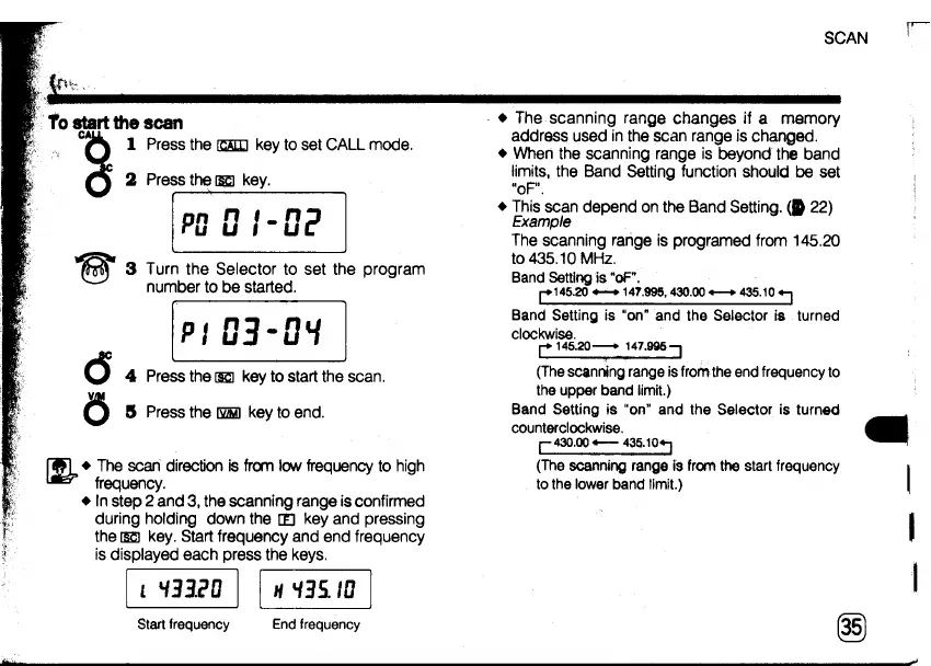 Standard C508 - Scan the Entire Band Width (All Scan); Scan a Specific Range (Program Scan)