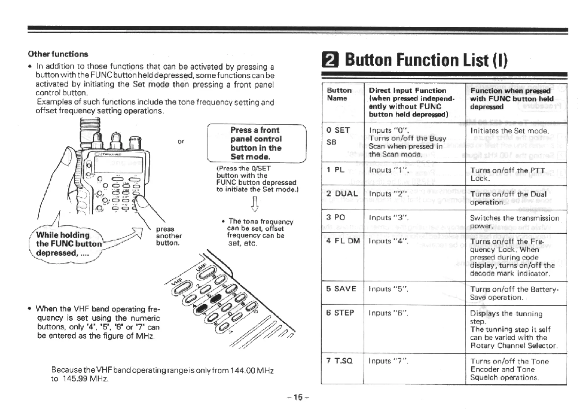 Standard C528 - Other functions; Button Function List (I)
