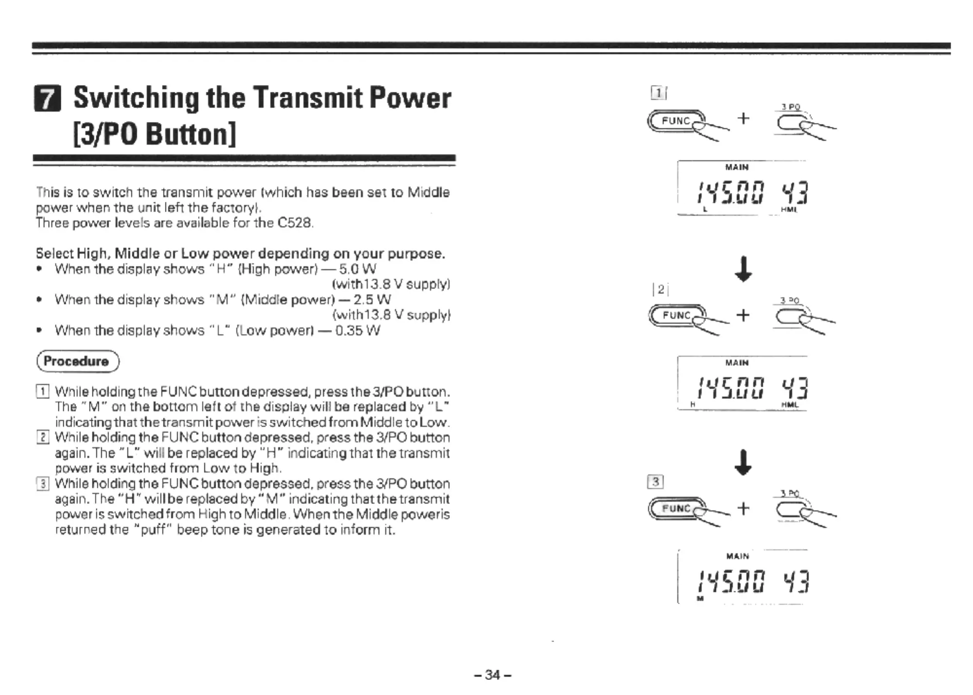 Standard C528 - Switching the Transmit Power [3;PO Button]