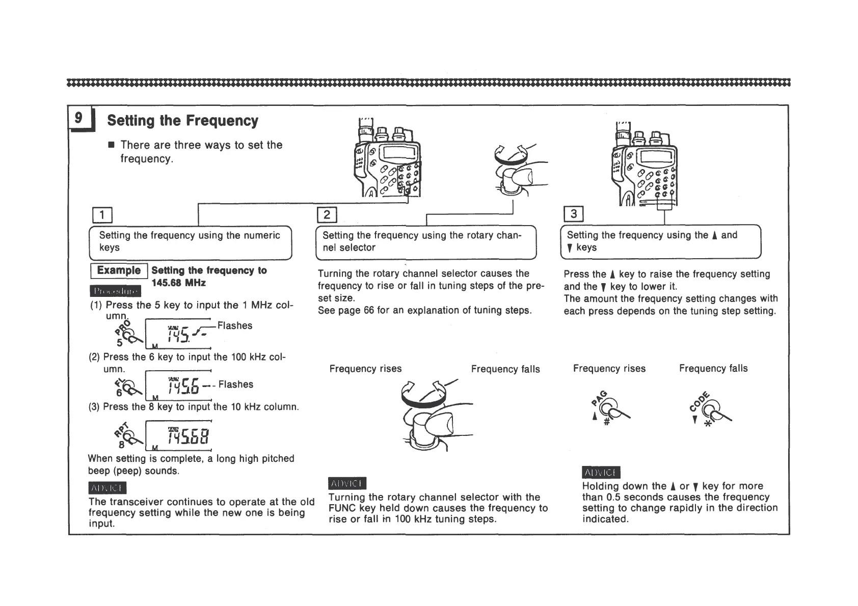 Standard C558 - Setting the Frequency; Setting Frequency with Numeric Keys; Setting Frequency with Rotary Channel Selector; Setting Frequency with Arrow Keys