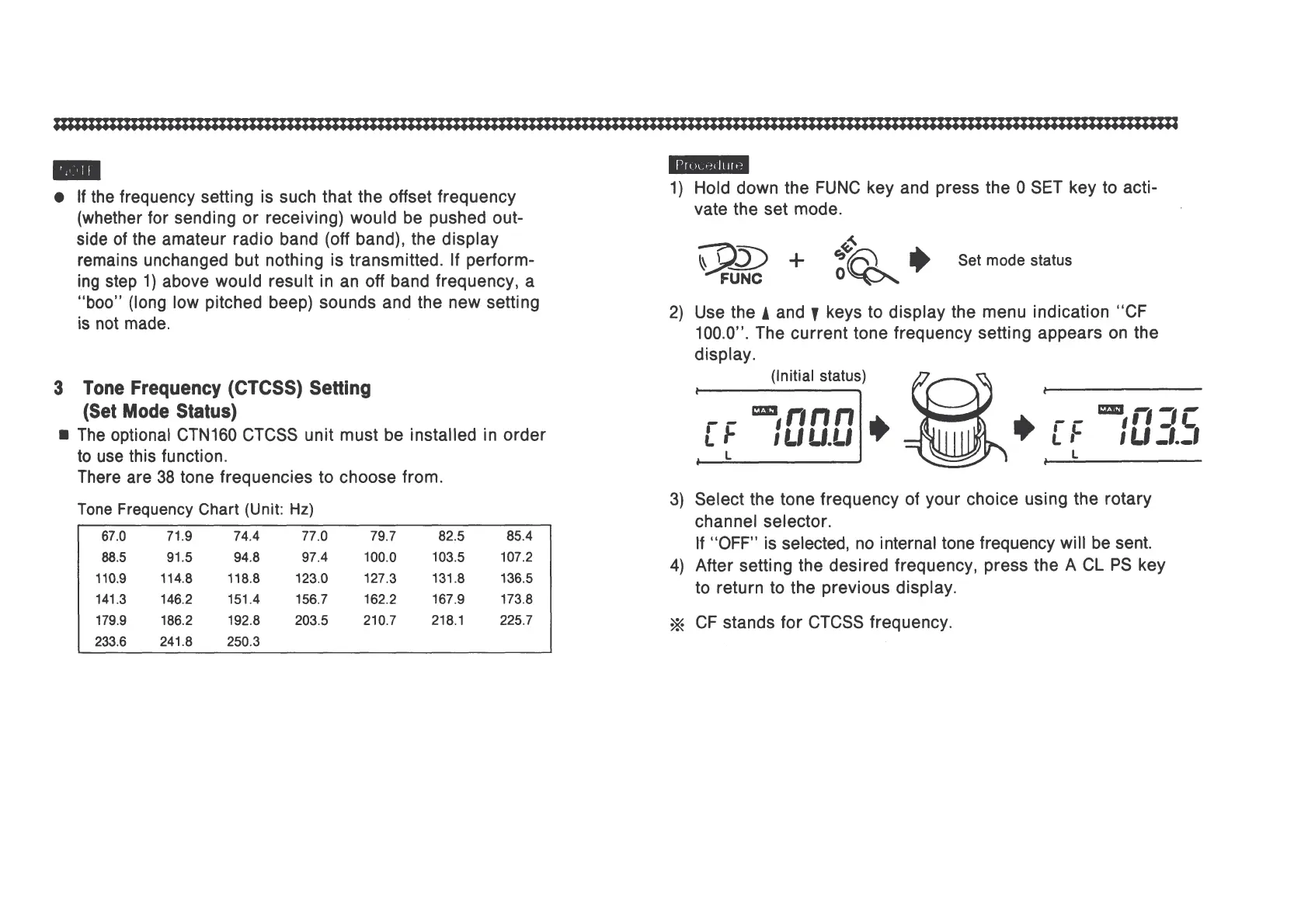 Standard C558 - Tone Frequency (CTCSS) Setting
