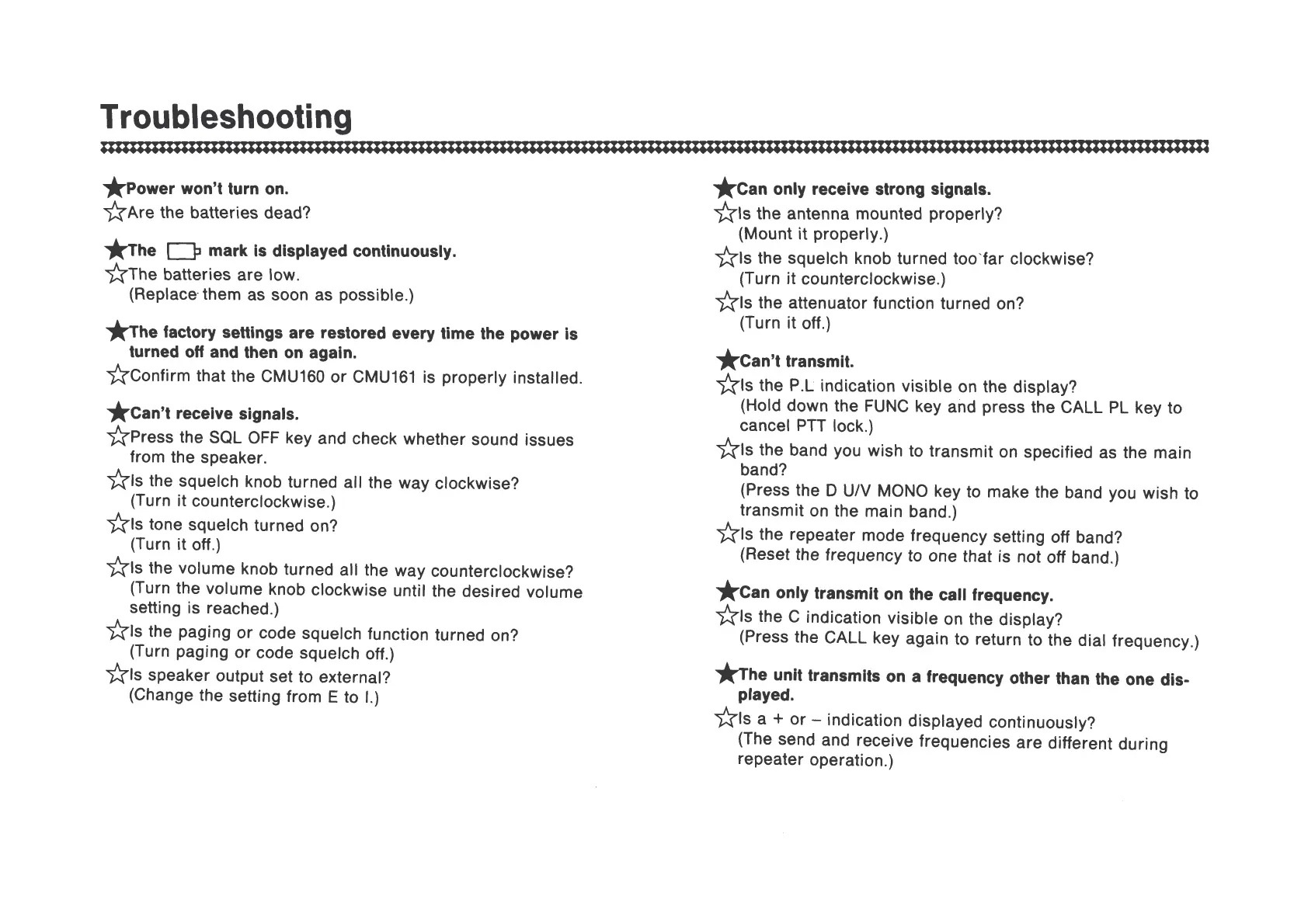 Standard C558 - Troubleshooting; Power and Signal Reception Issues; Transmission and Frequency Issues