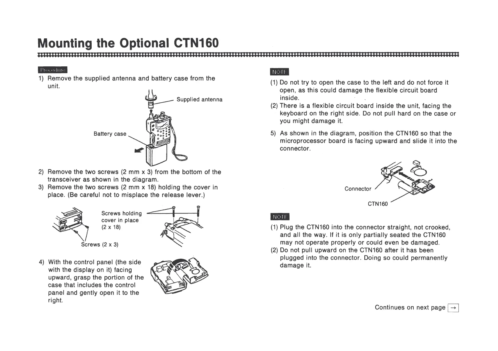 Standard C558 - Enabling Rotary Channel Selector in Frequency Lock Mode; Mounting the Optional CTN160