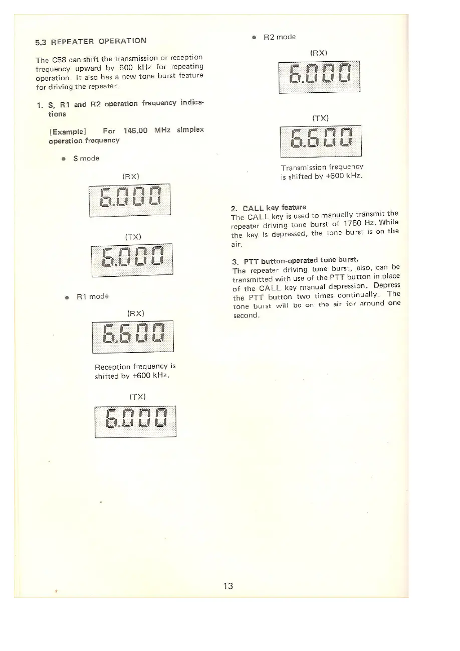 Standard C58 - REPEATER OPERATION; REPEATER FREQUENCY INDICATIONS; CALL KEY FEATURE; PTT OPERATED TONE BURST