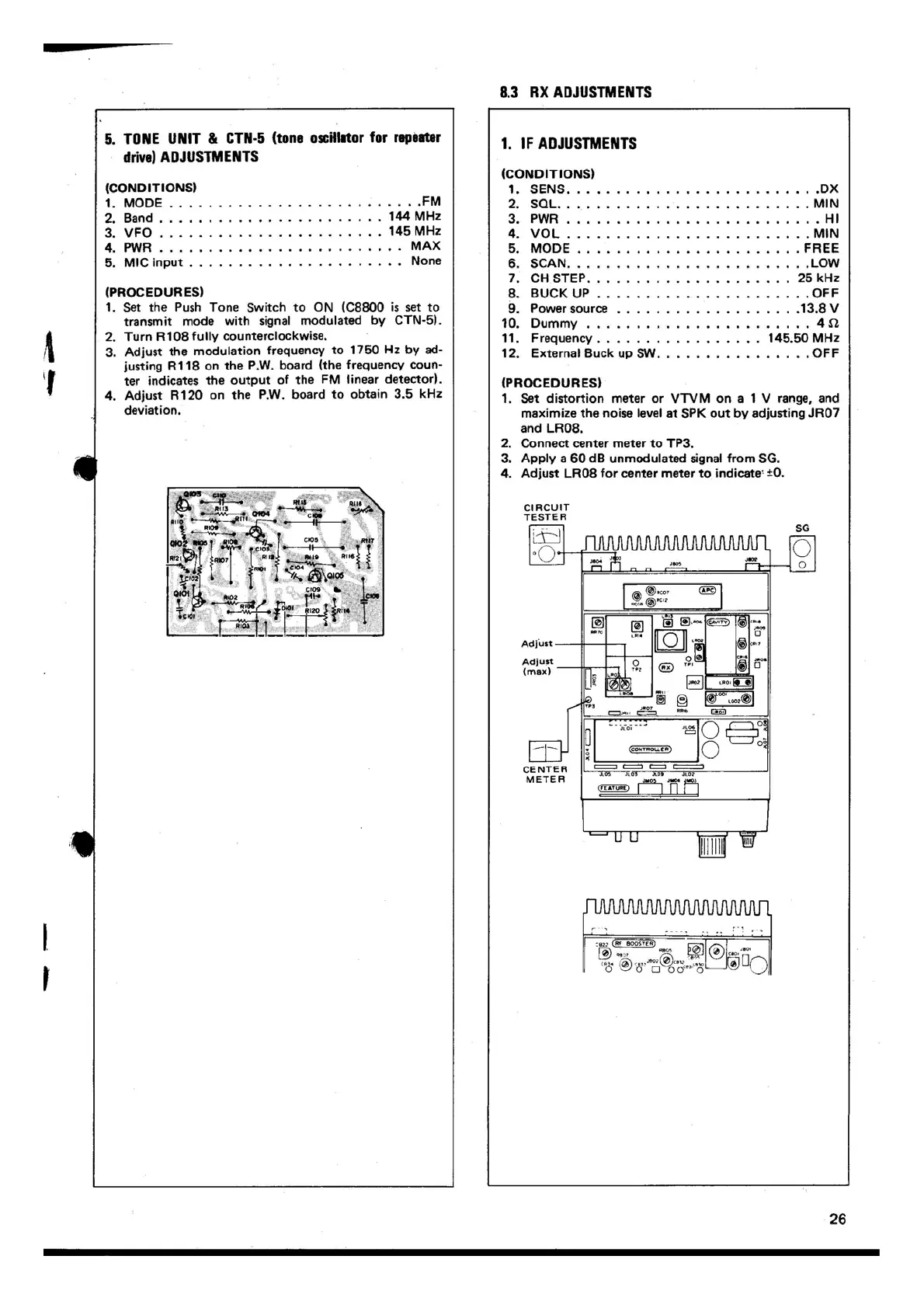 Standard C8800 - RX Adjustments; Tone Unit & CTN-5; IF Adjustments