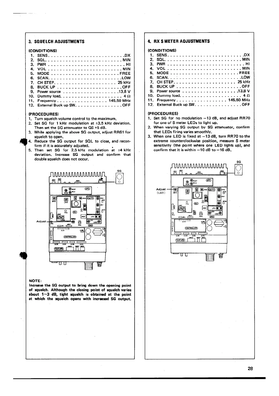 Standard C8800 - Squelch Adjustments; RX S Meter Adjustments