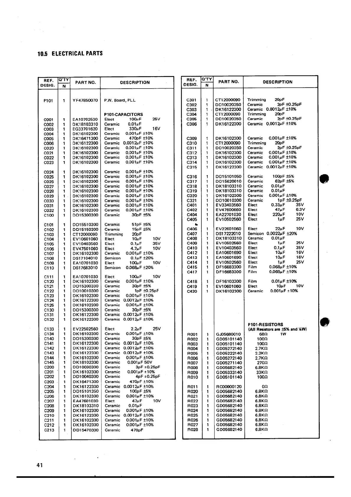 Standard C8800 - 10.5 Electrical Parts; P101-Capacitors; P101-Resistors